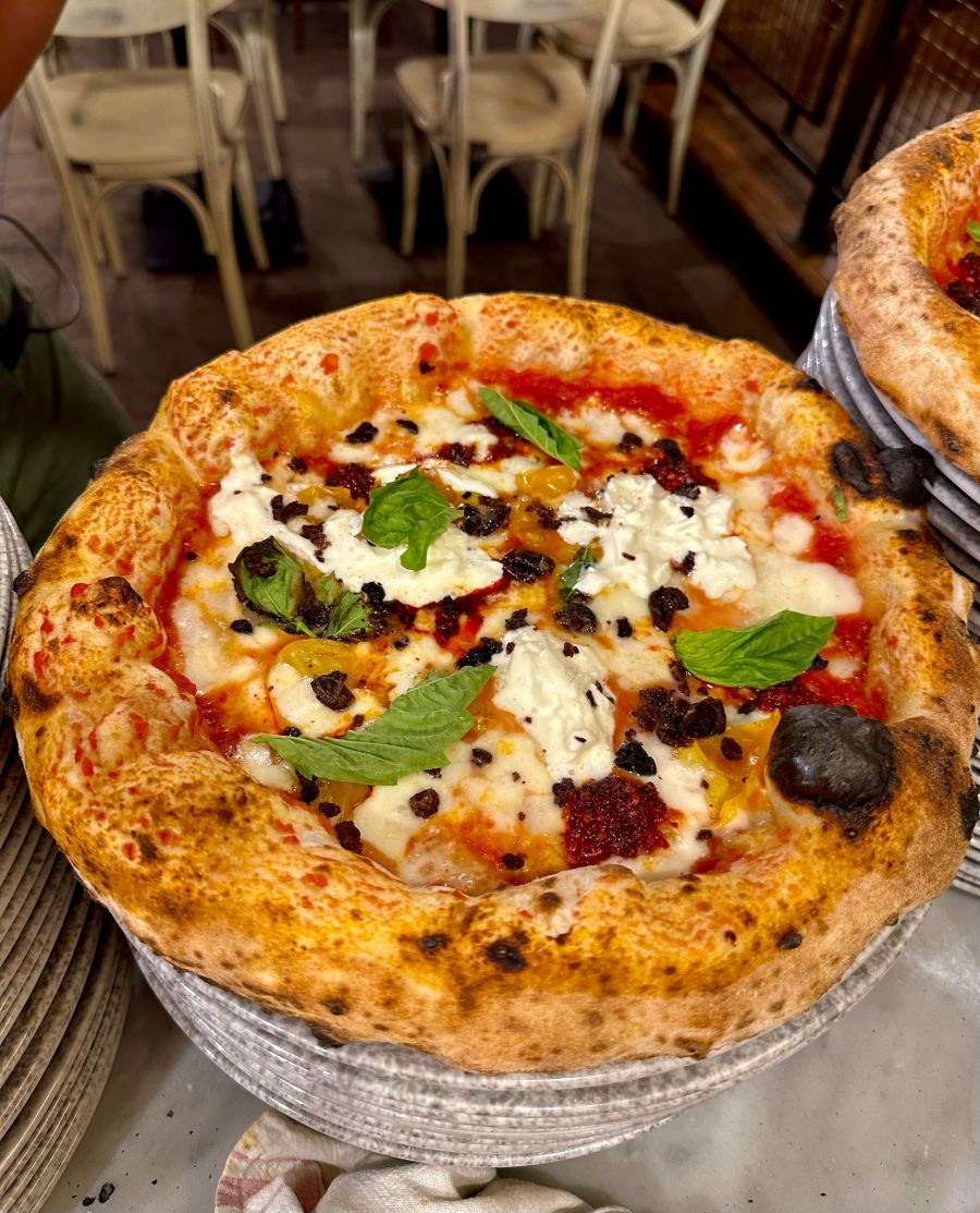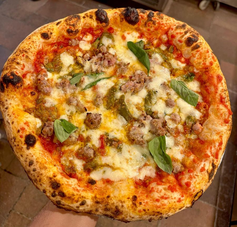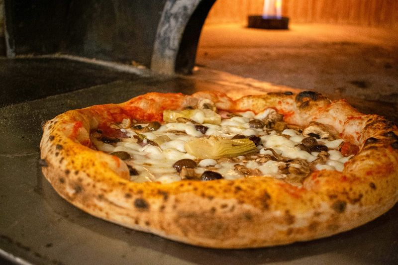 La cottura avviene direttamente sul piano del nostro forno a legna, ottenendo un risultato degno di essere chiamata pizza napoletana!